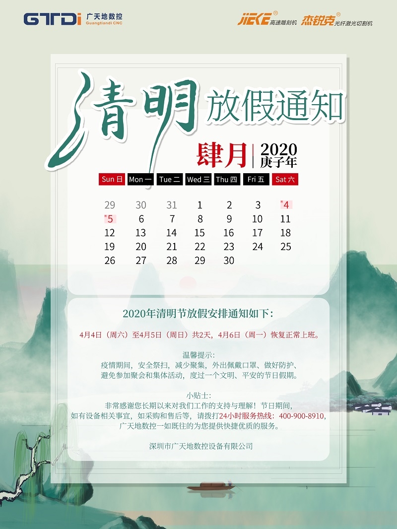 乐鱼数控2020年清明节放假时间安排