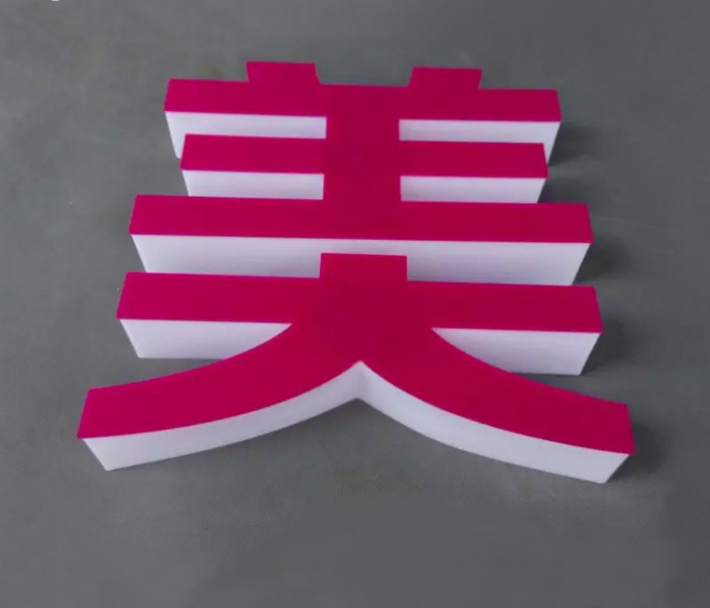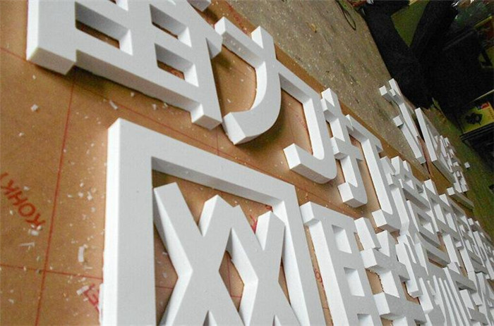 PVC立体字:材料为白色或黑色塑料板,用广告字雕刻机雕刻成字。