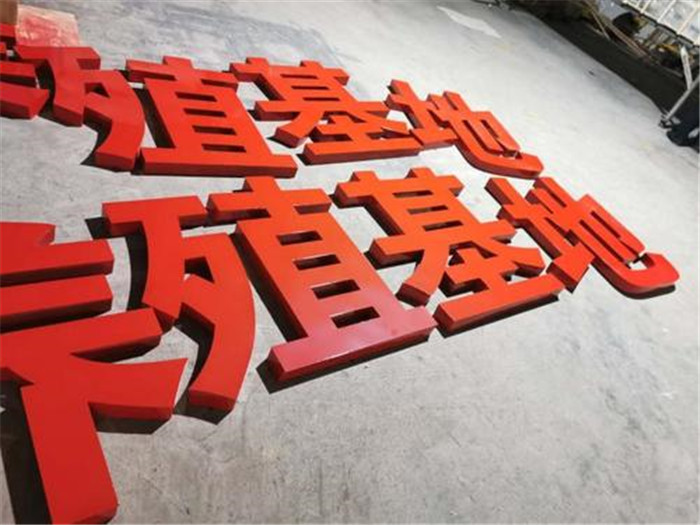 铁皮字。前几年没有吸塑发光字之前应用比较的多,分平面铁字和凸面铁字两种,材料为铁皮敲打,用焊接形式加厚度,分烤漆和喷漆上色。