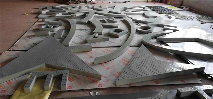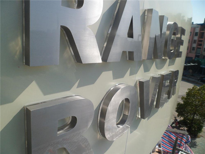 不锈钢字,有钛金字,不锈钢精工字,不锈钢较镀锌板而言可谓贵金属,加上其金属质感较独特,故一直以来较多人愿意让它以本来面目出现,不锈钢,人们利用其"不锈"的特点,采用抛光(发纹)面即哑光处理,或直接采用8K(镜面)处理,让其炫目多彩,这种类型属建筑流派中的光亮派的一种,但两种处理有个共同缺点,缺乏个性,因为多年来人们多选用这种工艺,固其个性不彰显;在户外灿烂的阳光下,可能因金属的折射原因,令文字笔画不清晰,而在阴雨天,金属因失去光泽或蒙灰的缘故同样显得模糊。