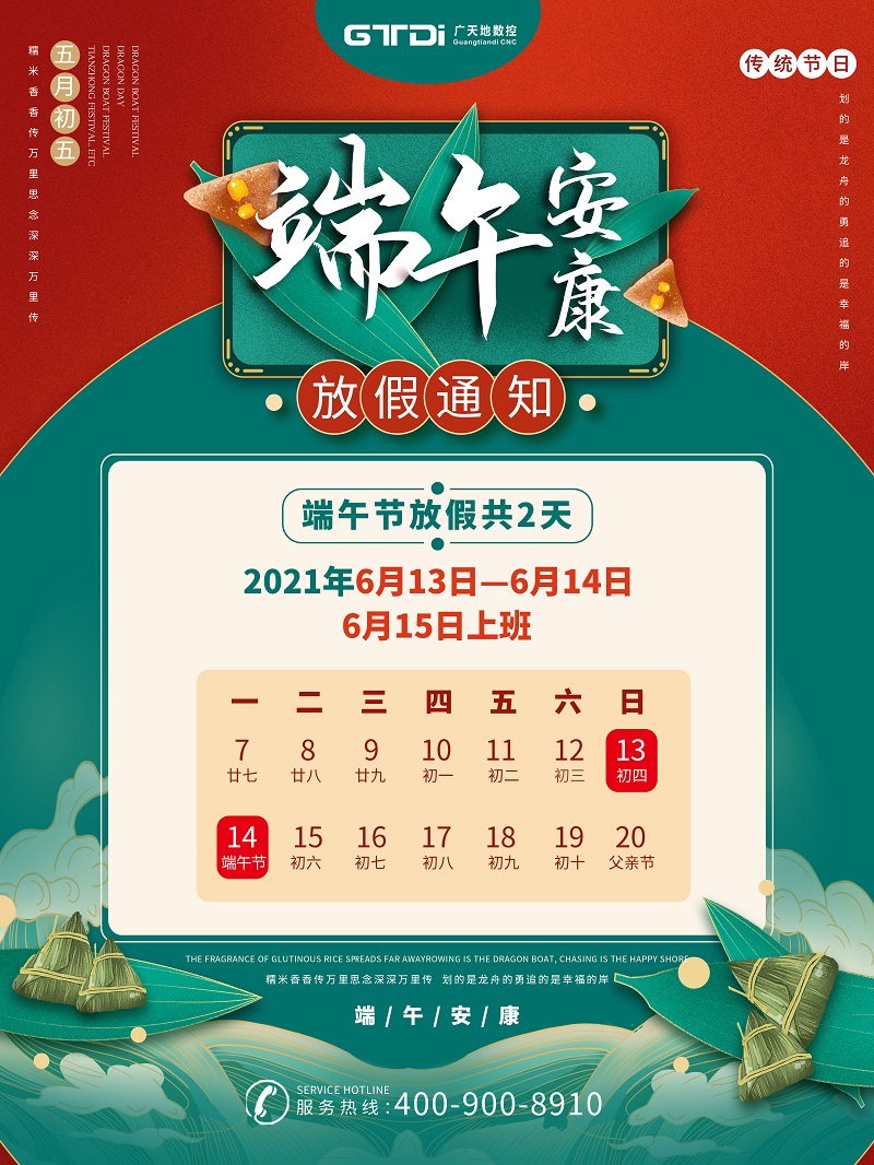 根据国务院办公厅《关于2021年部分节假日安排的通知》,并结合我司实际情况,乐鱼数控2021年端午节放假安排如下: