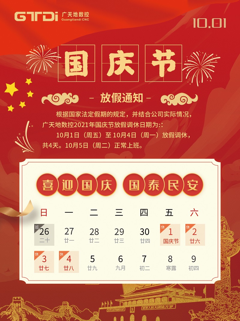 乐鱼数控2021年国庆节放假时间安排通知